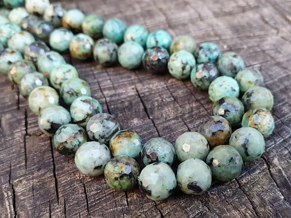 - Afrikai türkiz gyöngyök 8 mm csiszolt félhosszú zsinór