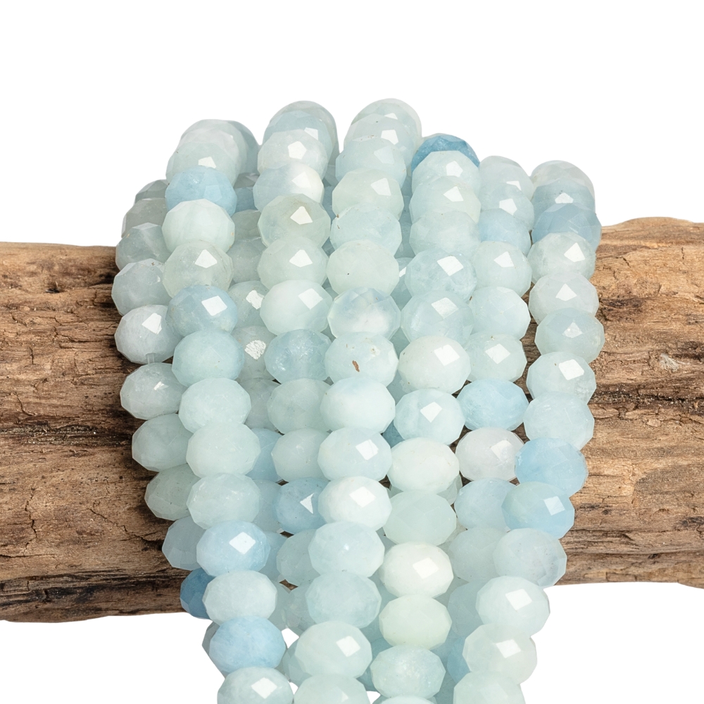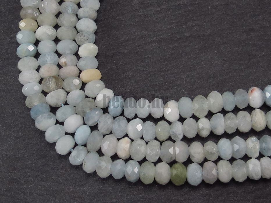 Akvamarin gyöngyök 6x4 mm fánk csiszolt félhosszú zsinór