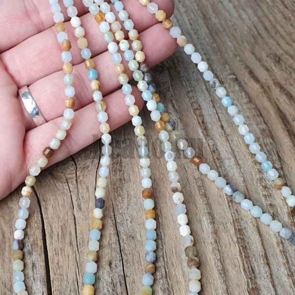 - Amazonit gyöngyök 4 mm csiszolt hordó félhoszú zsinór