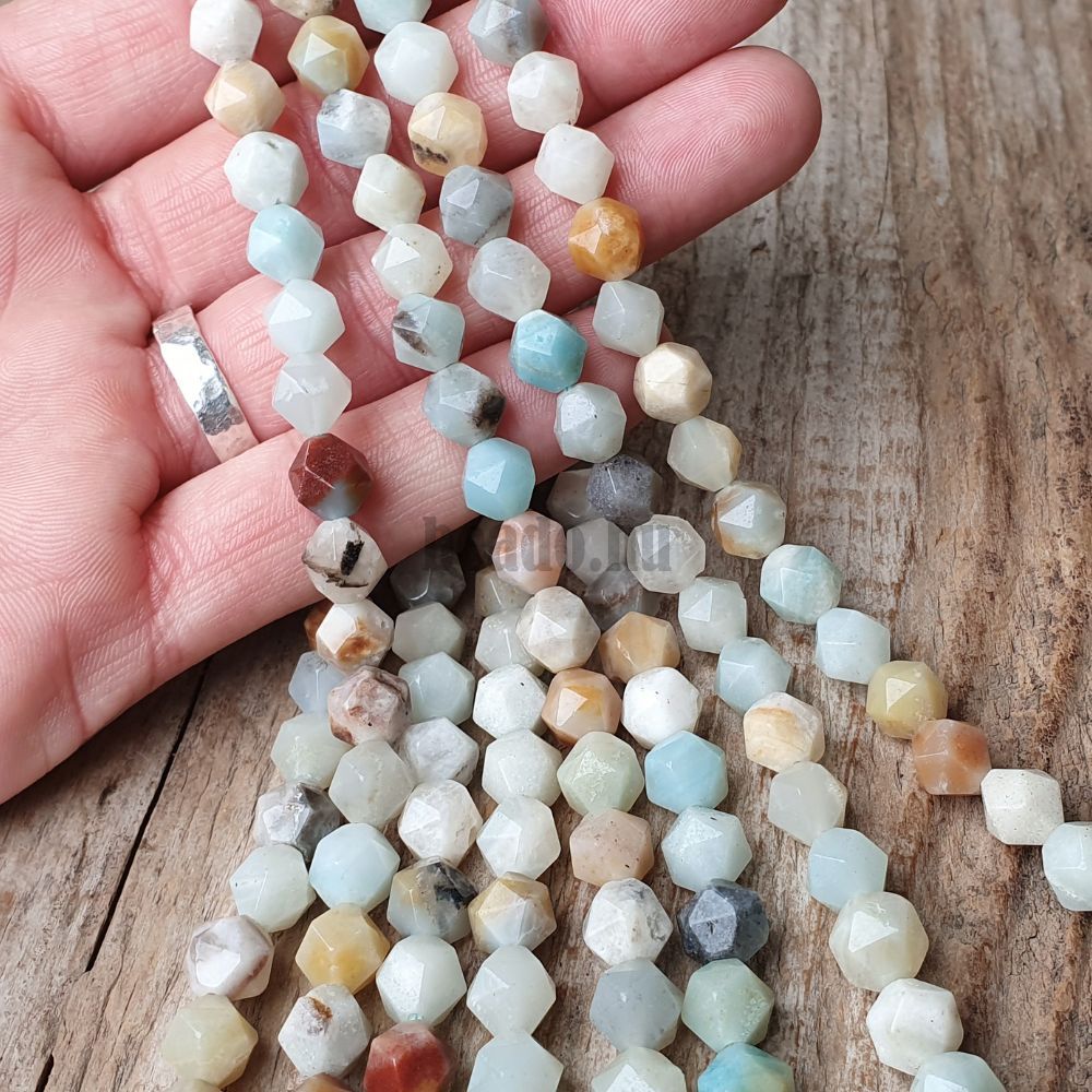 - Amazonit gyöngyök 8 mm bicone csiszolás zsinór