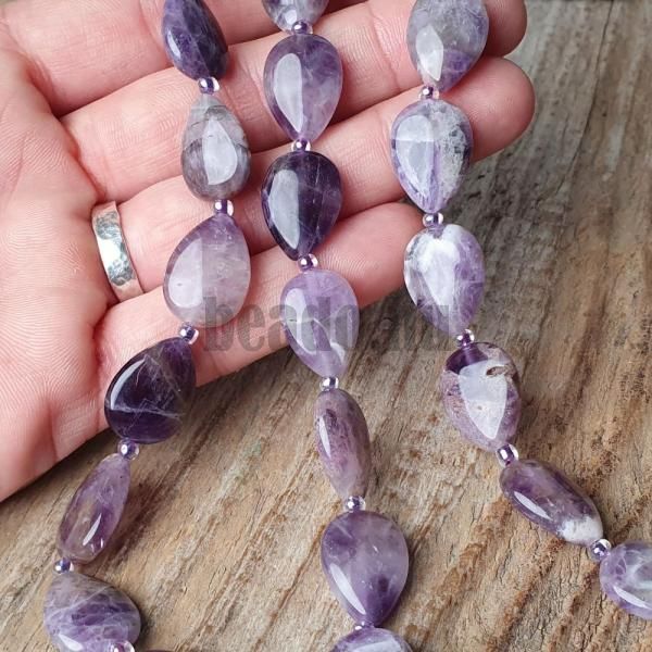 Ametiszt csíkos gyöngyök 13x18 mm könnycsepp félhosszú zsinór