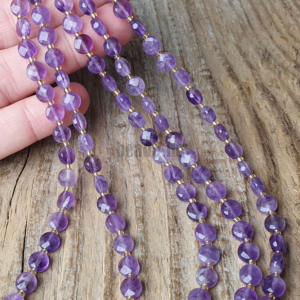 Ametiszt gyöngyök 6 mm lemezek csiszolt félhoszú zsinór