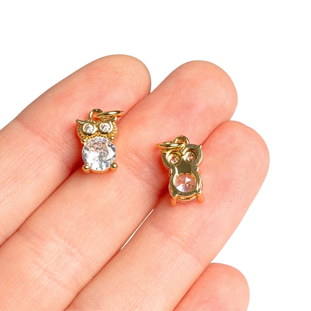 Baglyocska nagyob medál arany fehér cirkonnal