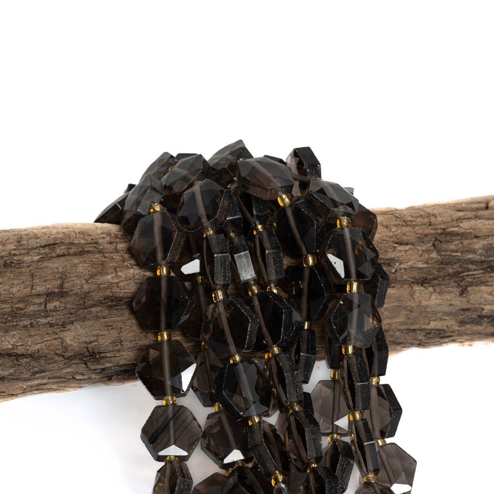 Barna obszidián gyöngyök 12 mm hatszögek csiszolt félhosszú zsinór