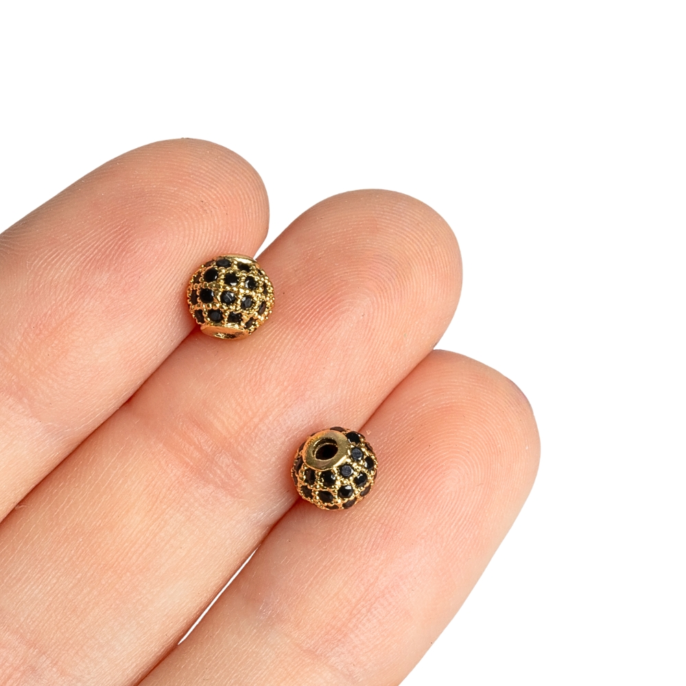 • Charm közdarab 6 mm arany fekete cirkonnal
