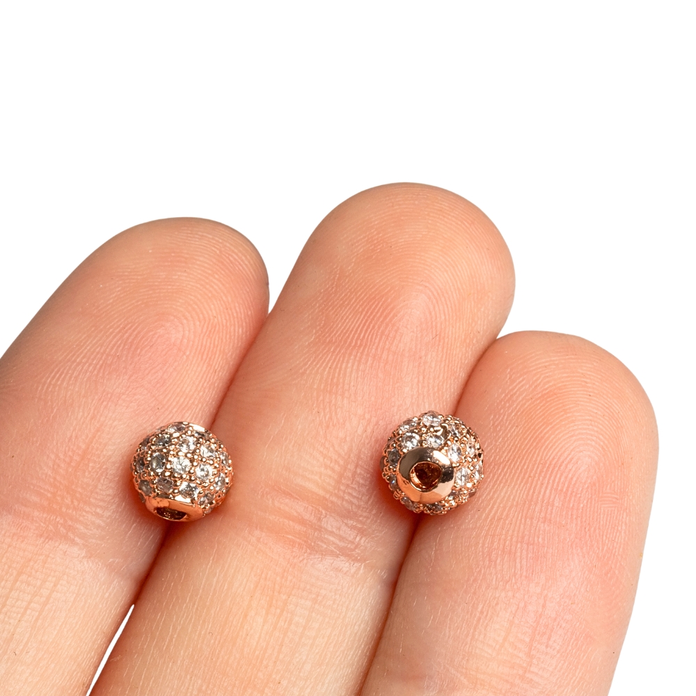 Charm közdarab 6 mm rózsaarany fehér cirkonnal