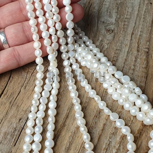 Édesvízi gyöngyök 6-7 mm pénz formájú 4-lyukú zsinór