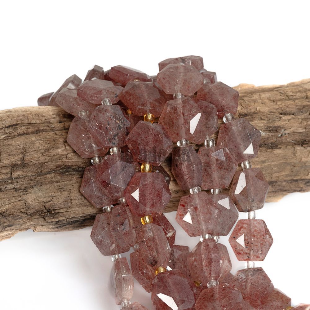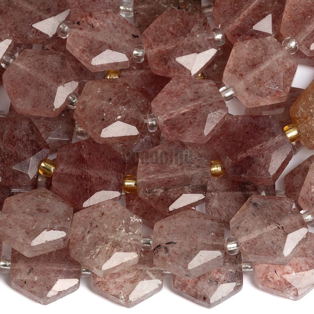 Eperkvarc gyöngyök 12 mm hatszögek csiszolt félhosszú zsinór