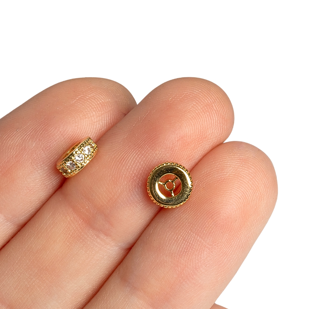 Fánk gyöngy 6 mm arany fehér cirkonnal