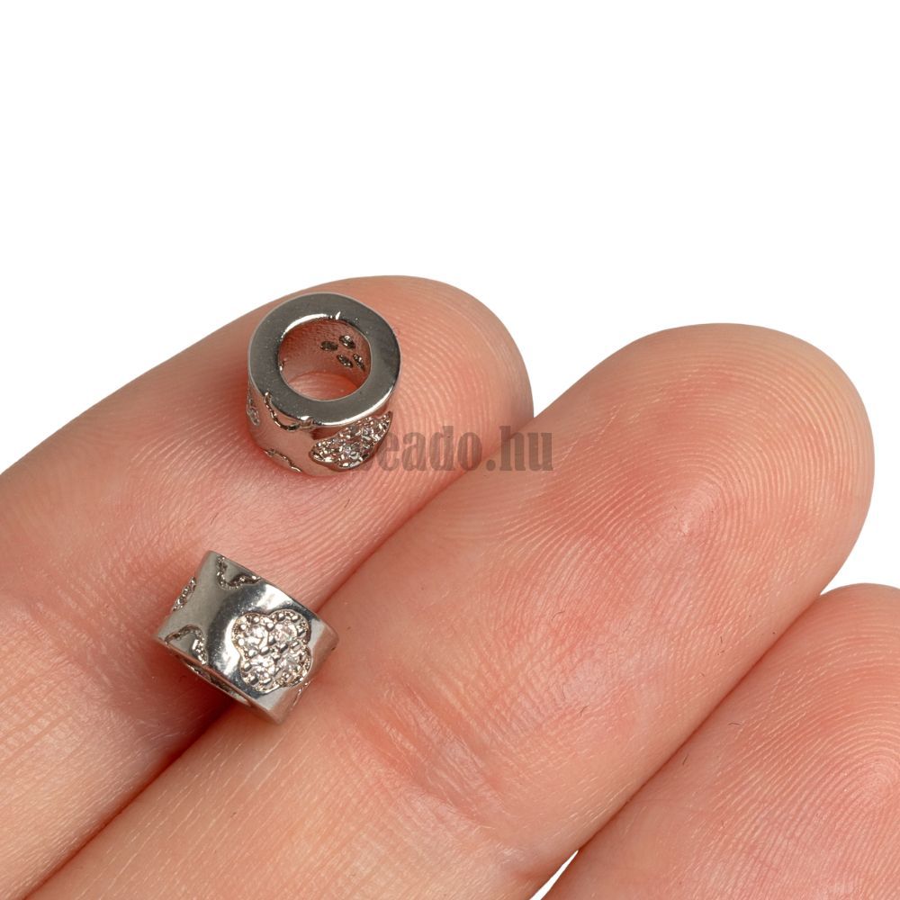 Fánk négylevelű lóherével gyöngy ezüst fehér cirkonnal