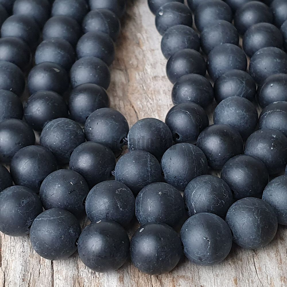 - Fekete turmalin gyöngyök 8 mm matt félhosszú zsinór