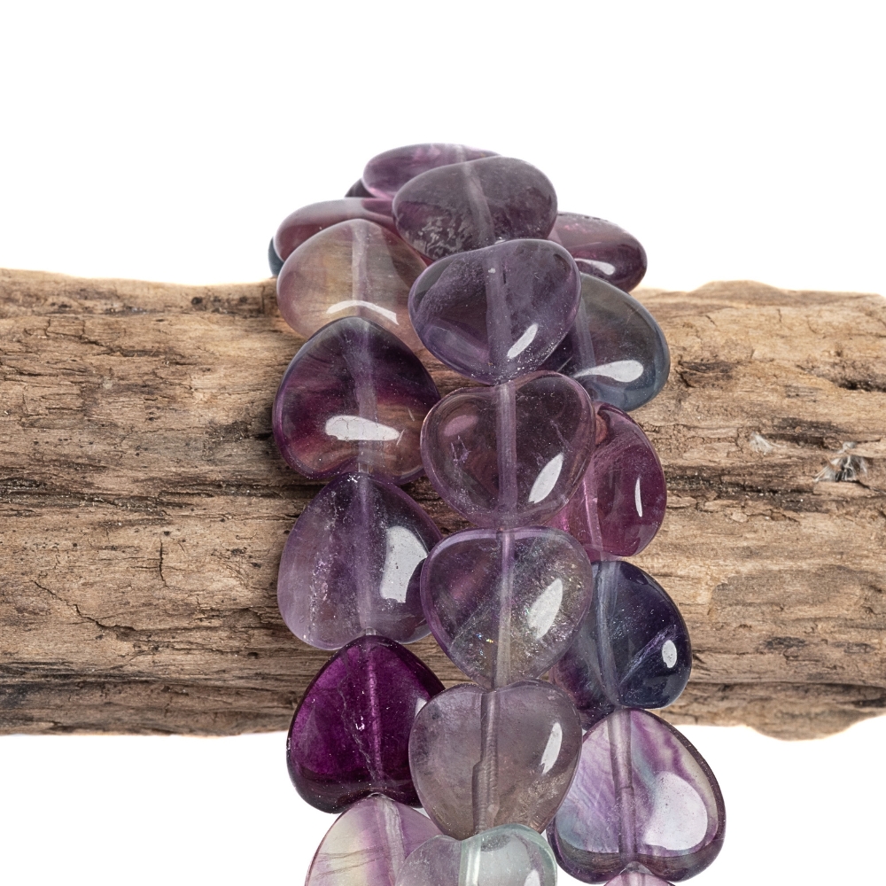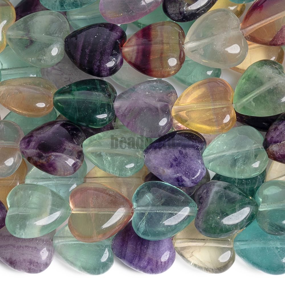 Fluorit gyöngyök 12 mm szívecske félhosszú zsinór