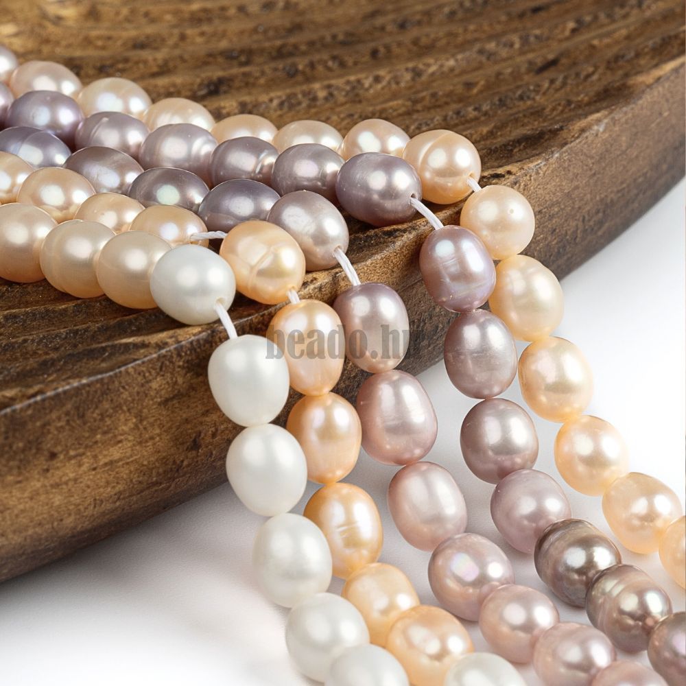 - Folyógyöngyök 5-6 mm színes mix zsinór