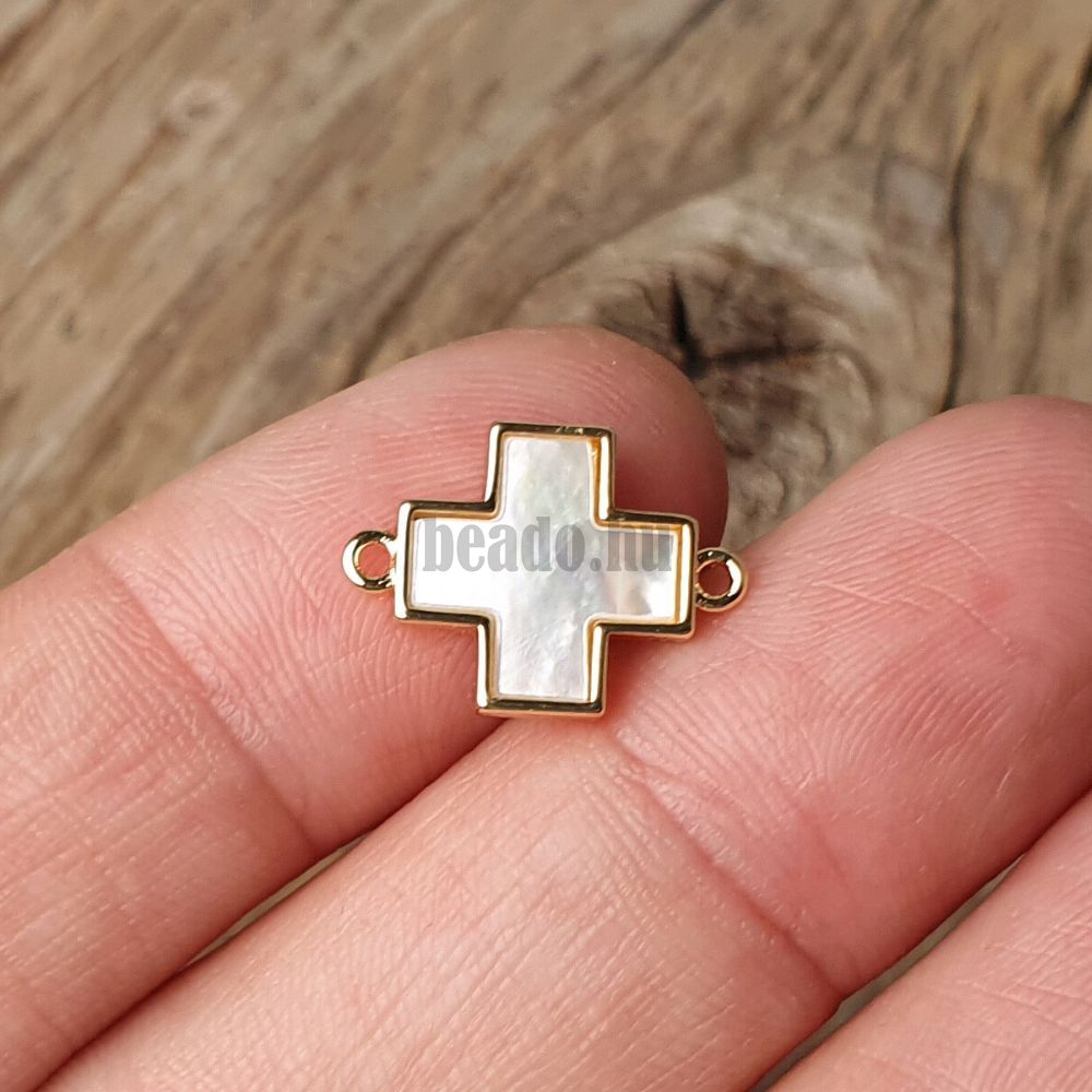 Gyöngyház közdarab 16x12 mm kereszt arany keret
