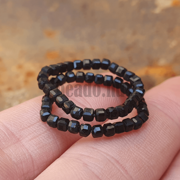 Gyűrű fekete turmalinból 2-3 mm minikockák