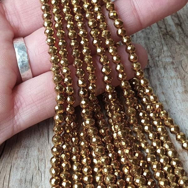 - Hematit gyöngyök 4 mm arany csiszolt zsinór