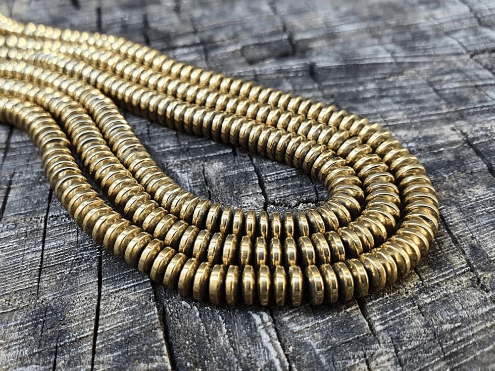 Hematit gyöngyök 4x2 mm arany minikorong félhosszú zsinór