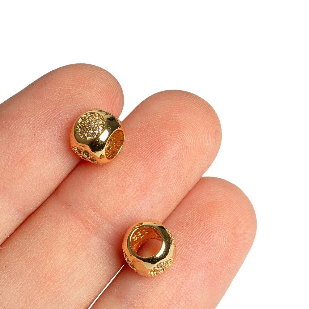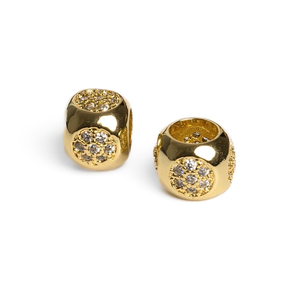 • Hordócska gyöngy nagylyukú arany fehér cirkonnal