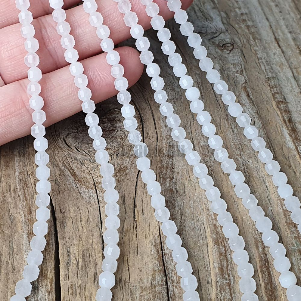 - Jadeit gyöngyök 4 mm tejes fehér csiszolt hordó félhoszú zsinór