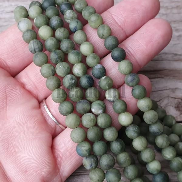 Jadeit Taiwan gyöngyök 6 mm matt zsinór