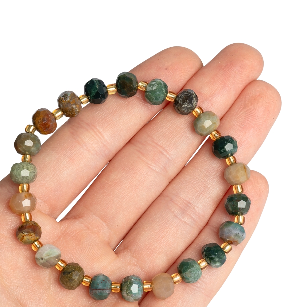 - Karkötő indiai achát 6x8 mm csiszolt rondellák rokaival