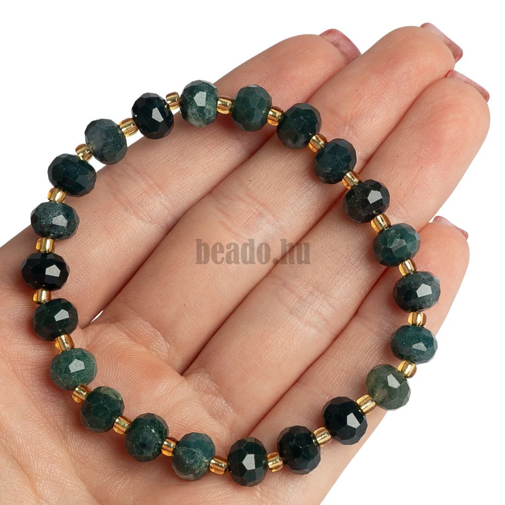 - Karkötő moha achát 6x8 mm csiszolt rondellák rokaival