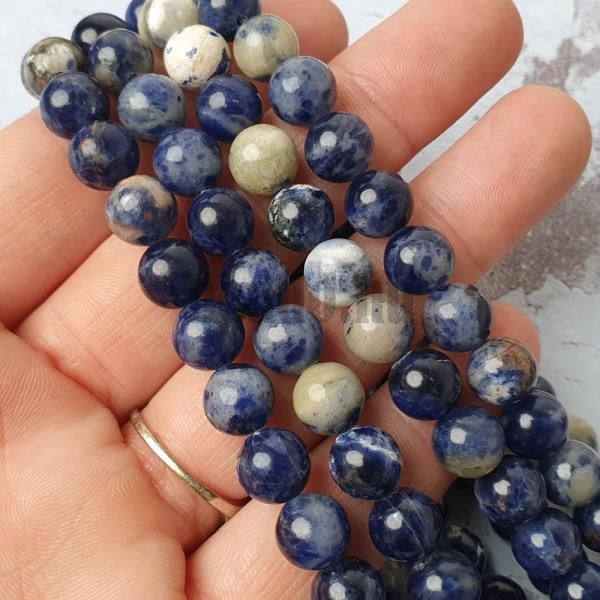 - Kékesfehér szodalit gyöngyök 8 mm zsinór