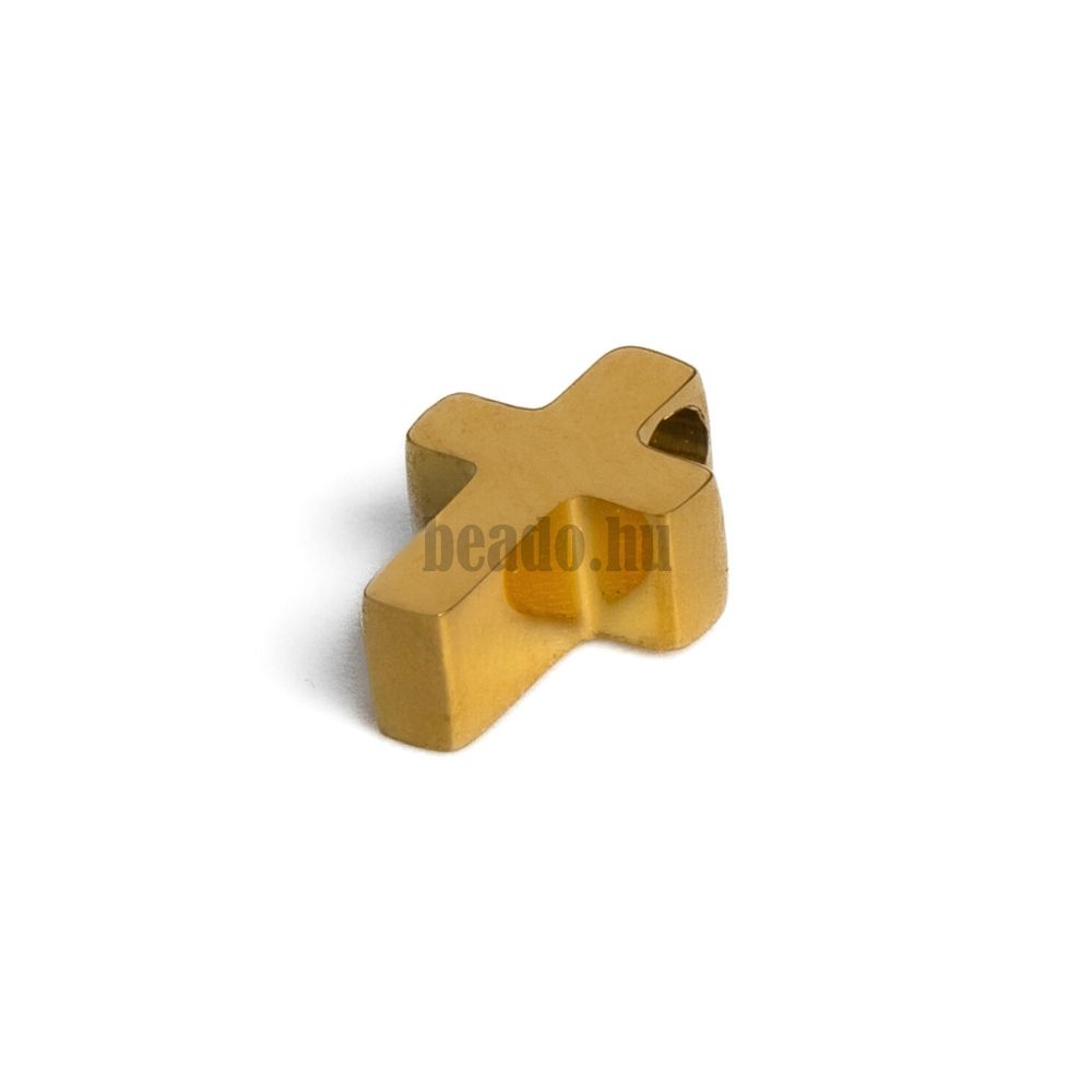 Kereszt medál kapoccsal 8x5 mm arany nemesacél