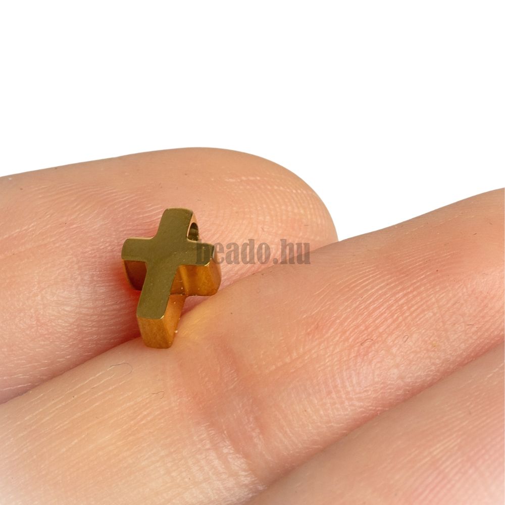 • Kereszt medál kapoccsal 8x5 mm arany nemesacél