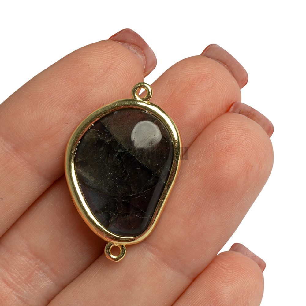 • Közdarab labradorit 18x30 mm aszimmetrikus arany keretes