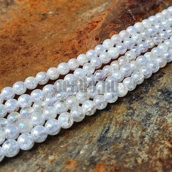 Kristály aqua aura repedezett gyöngyök 4 mm fehér félzsinór