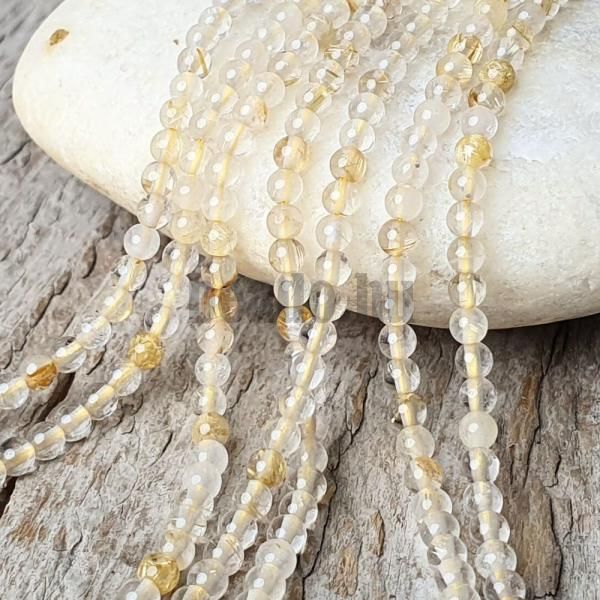 Kristály arany rutilszállal gyöngyök 3 mm zsinór