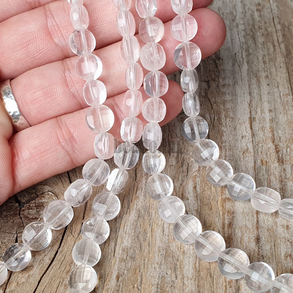 Kristály gyöngyök 8 mm pénzérme félhosszú zsinór