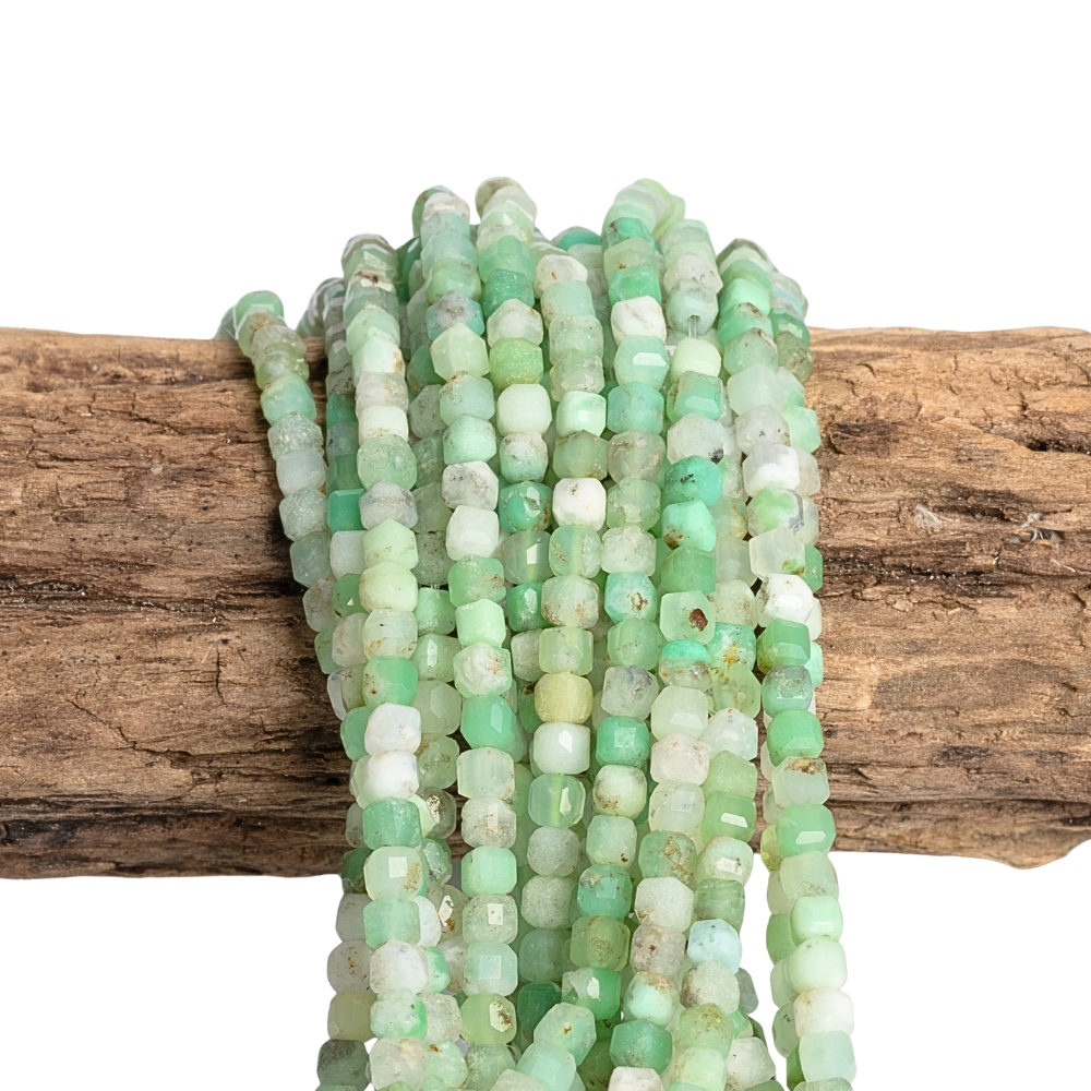 Kriszopráz gyöngyök 3,5 mm kockák csiszolt félhoszú zsinór