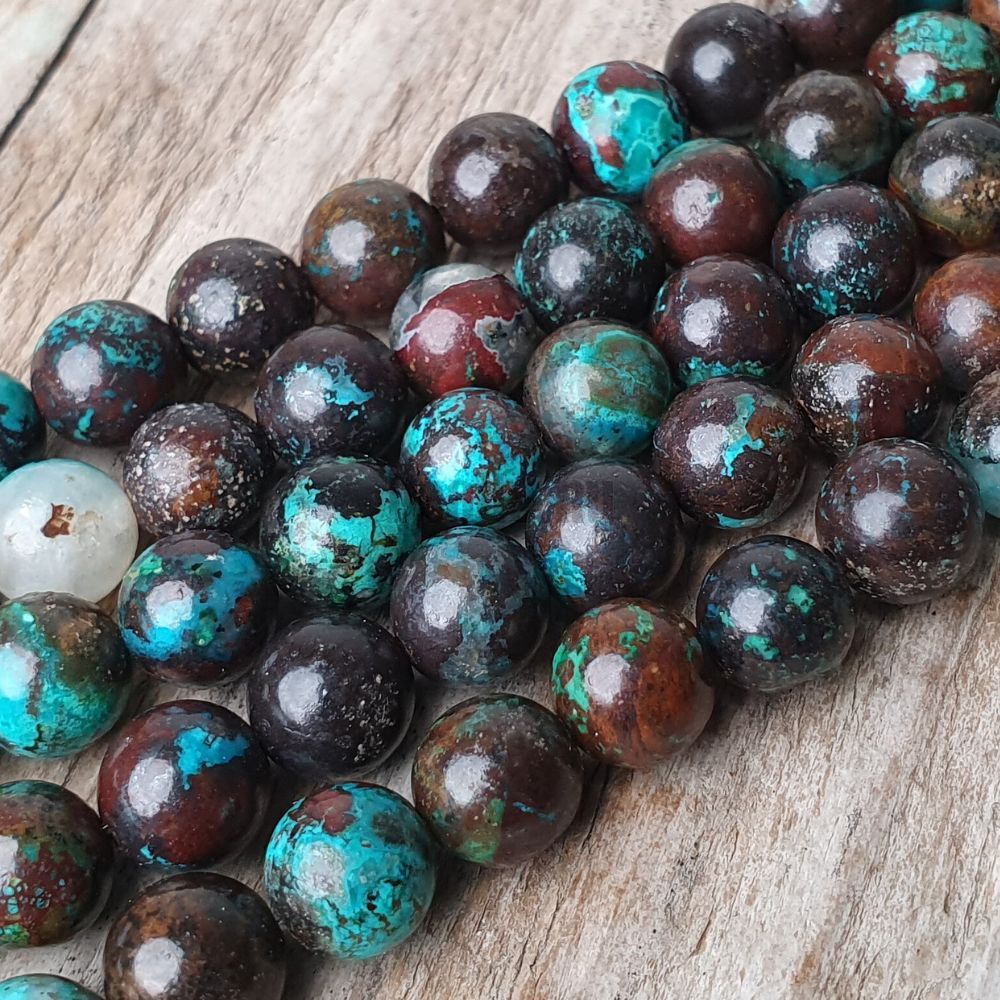 - Krizokolla barna-türkiz gyöngyök 6 mm félhosszú zsinór