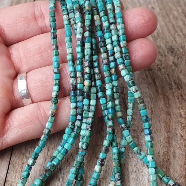 - Krizokolla gyöngyök 3,5 mm kockák csiszolt felhosszú zsinór