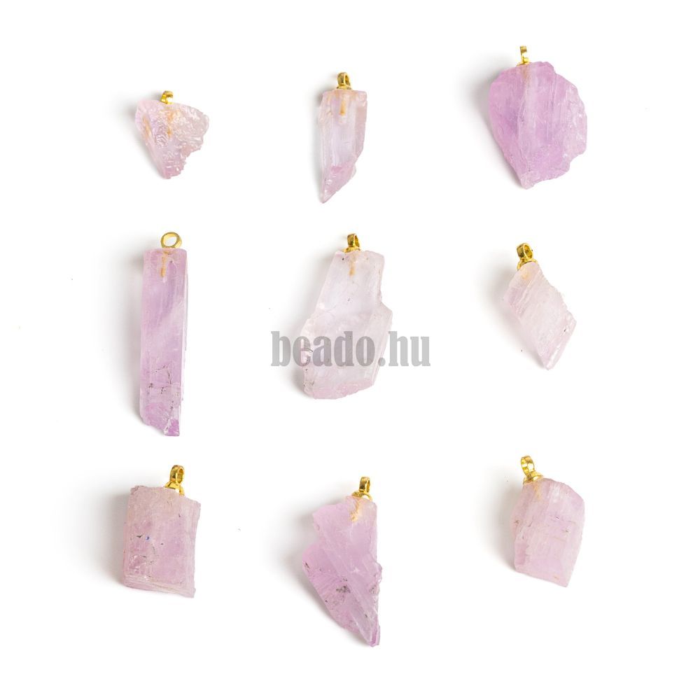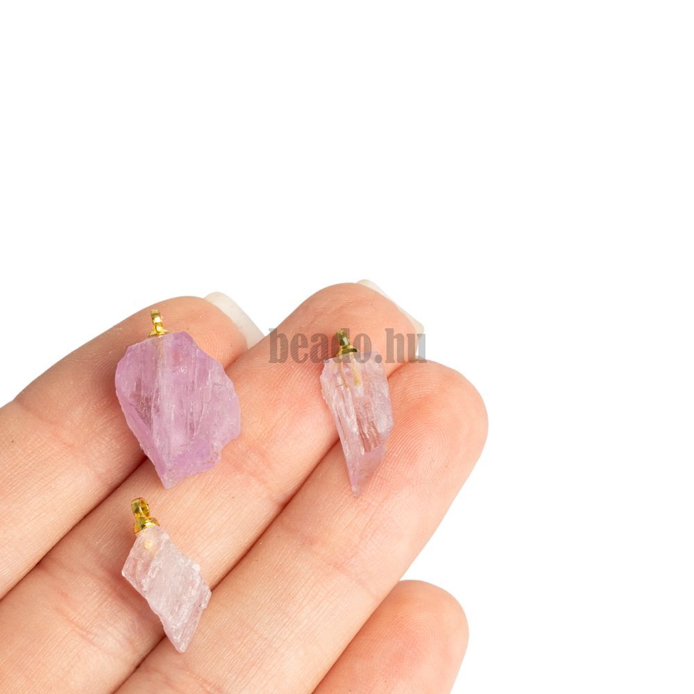 • Kunzit nyers mini medál arany színű szemmel rozsdamentes acélból