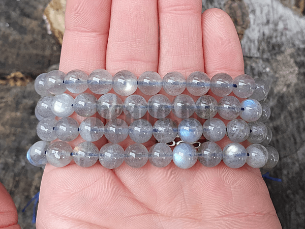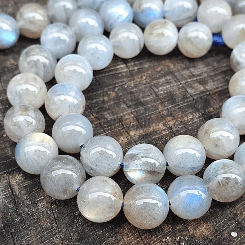Labradorit gyöngyök 8 mm világos félhosszú zsinór