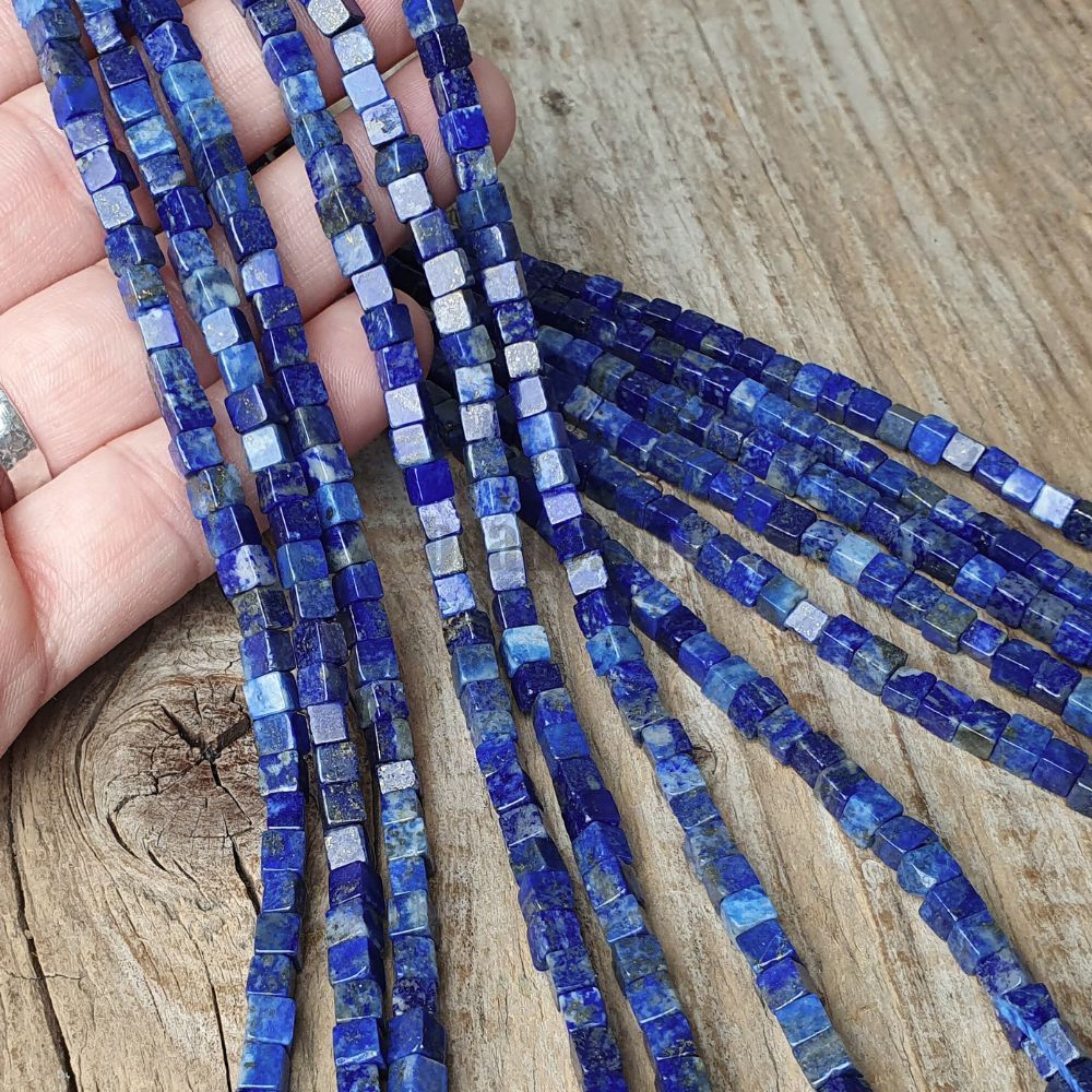 • Lapis lazuli gyöngyök 4 mm kockák félhosszú zsinór