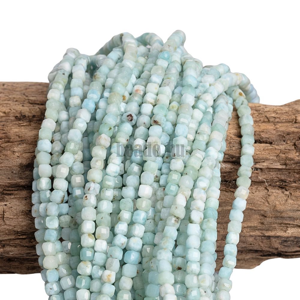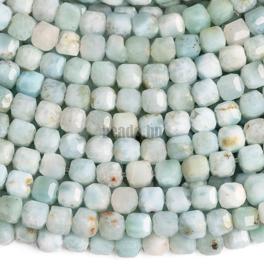 • Larimar gyöngyök 2,5 mm kockák csiszolt A minőségű félhosszú zsinór