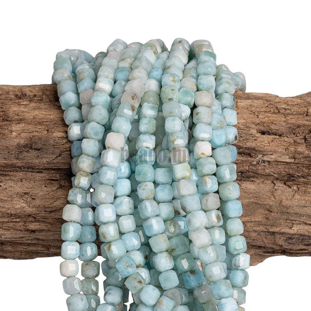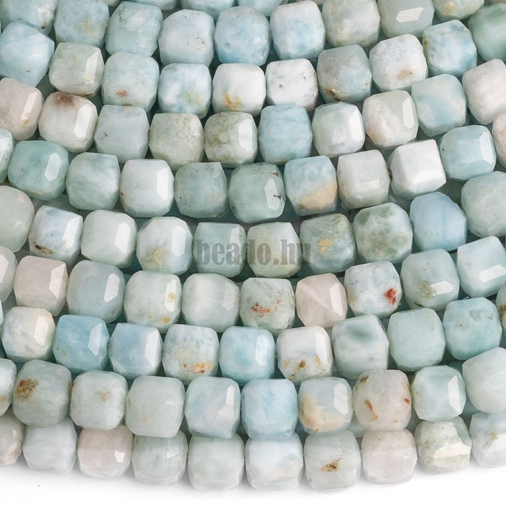 • Larimar gyöngyök 3,5 mm kockák csiszolt A minőségű félhosszú zsinór