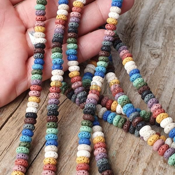 Lávakő gyöngyök 6 mm kevert színek pasztell rondell zsinór
