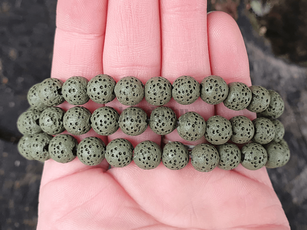 Lávakő gyöngyök 8 mm khaki zöld zsinór