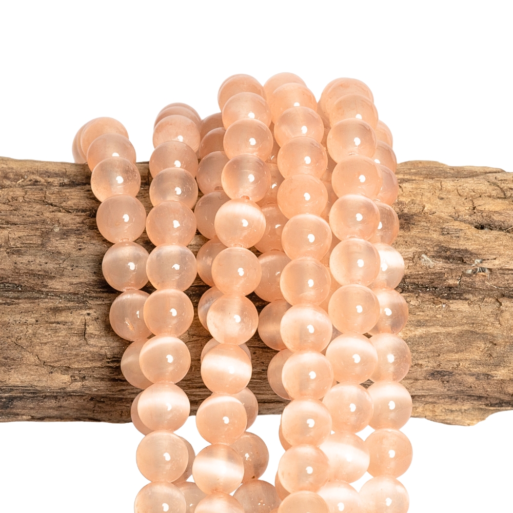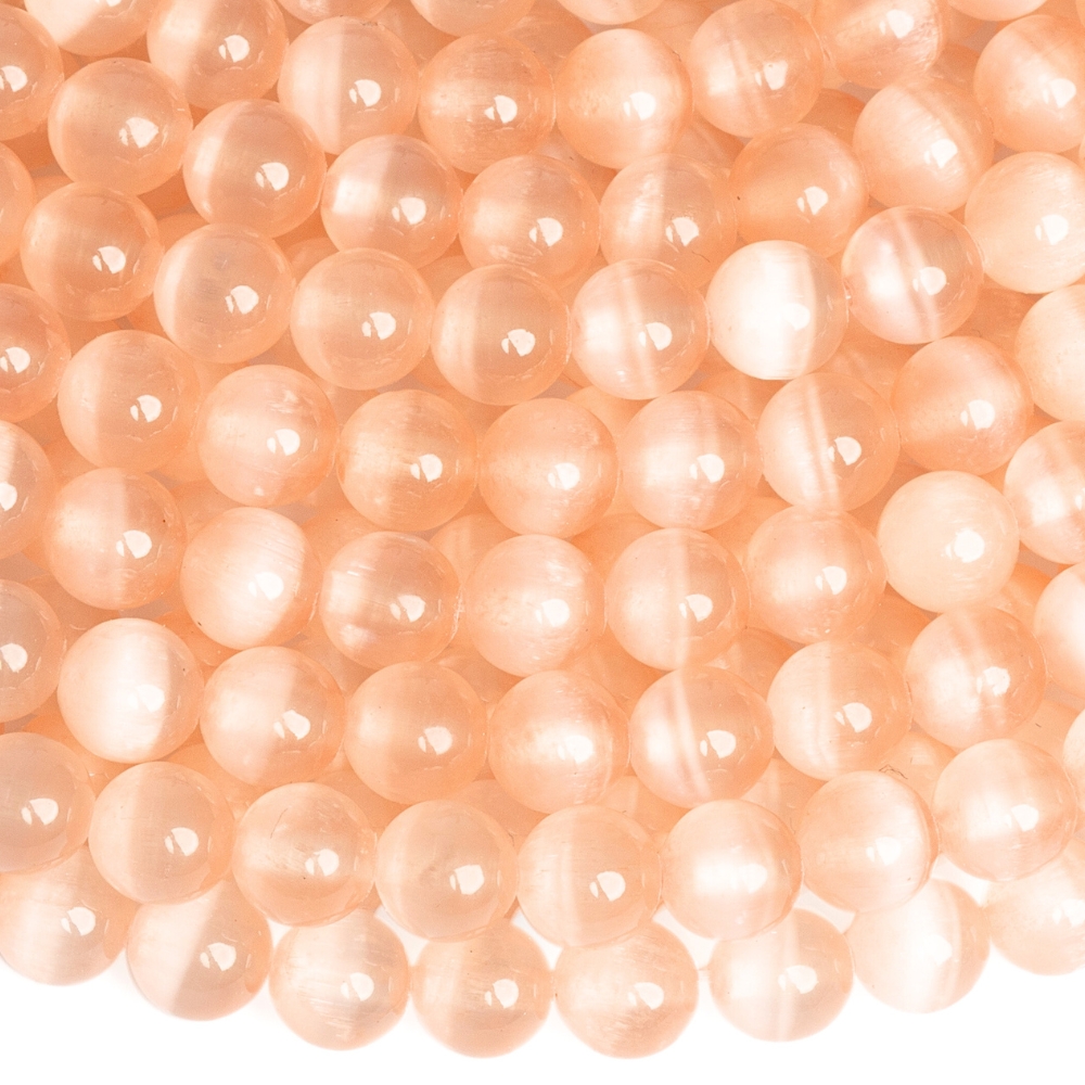Lazacszínű szelenit gyöngyök 6 mm félhosszú zsinór