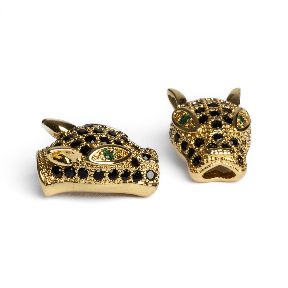 • Leopárdfej gyöngy arany fekete cirkonnal