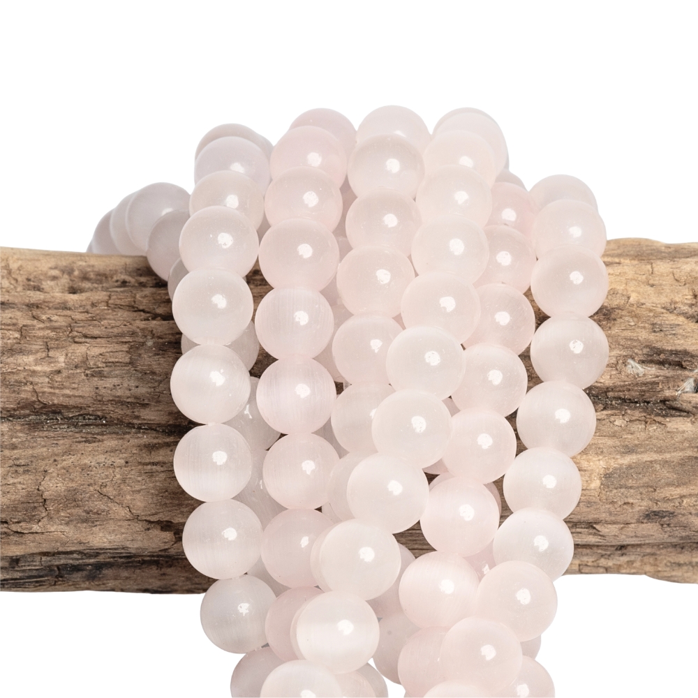 Macskaszem gyöngyök 8 mm halványrózsaszín zsinór
