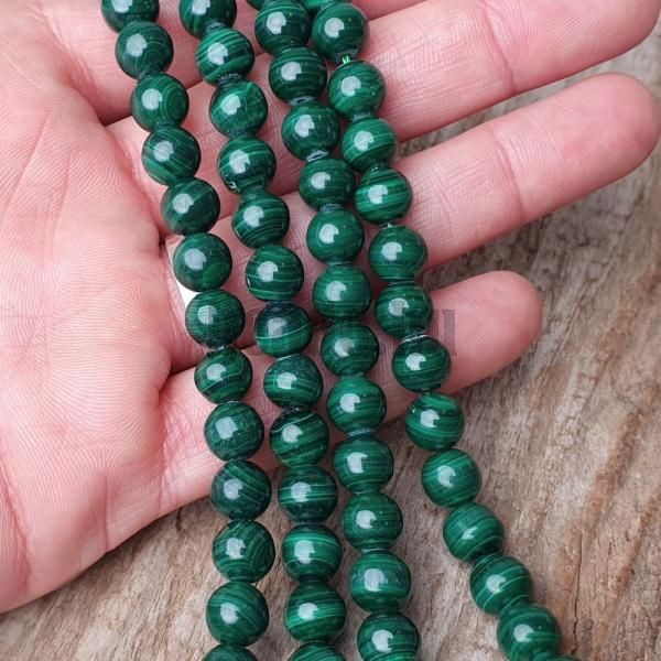 Malachit gyöngyök 8 mm félhosszú zsinór