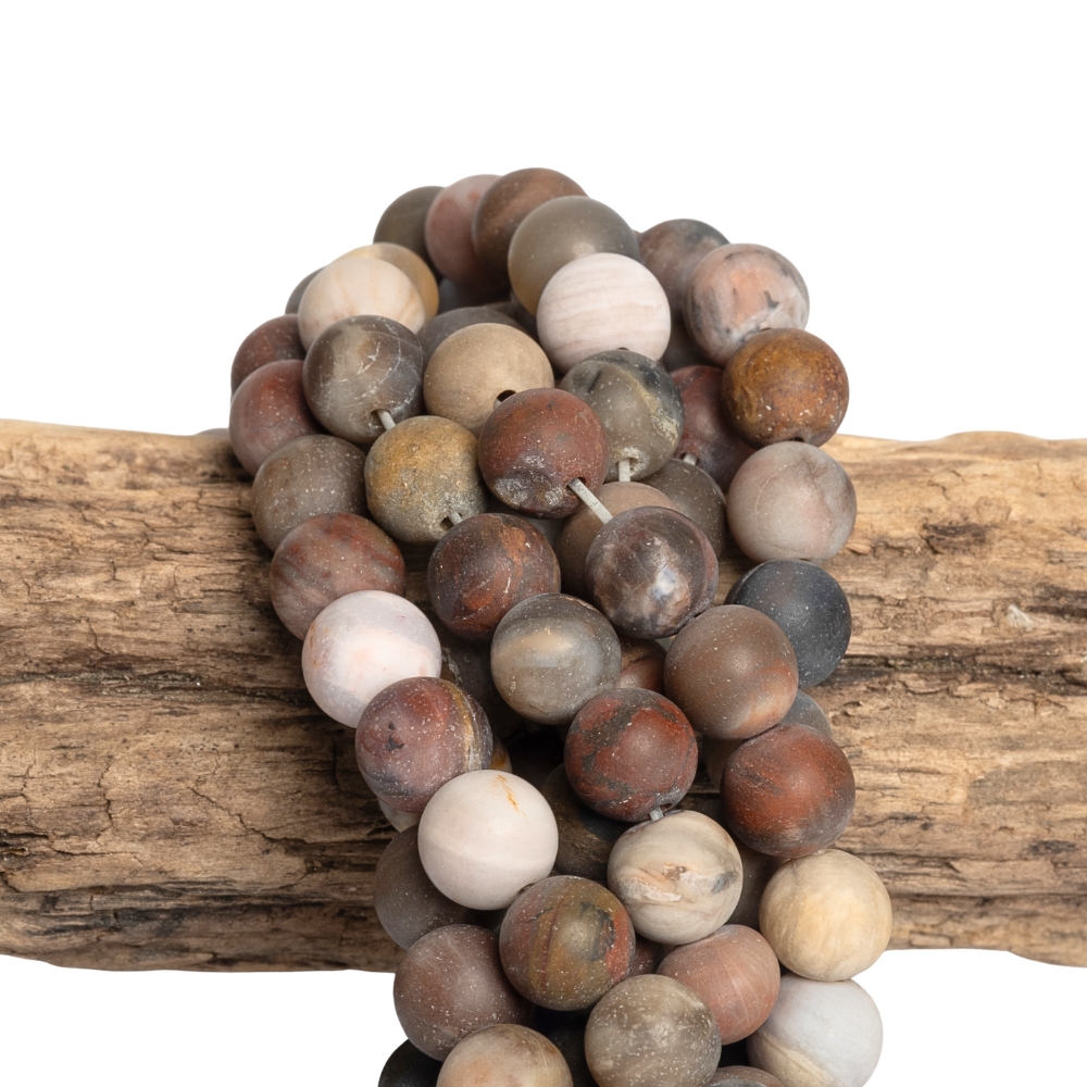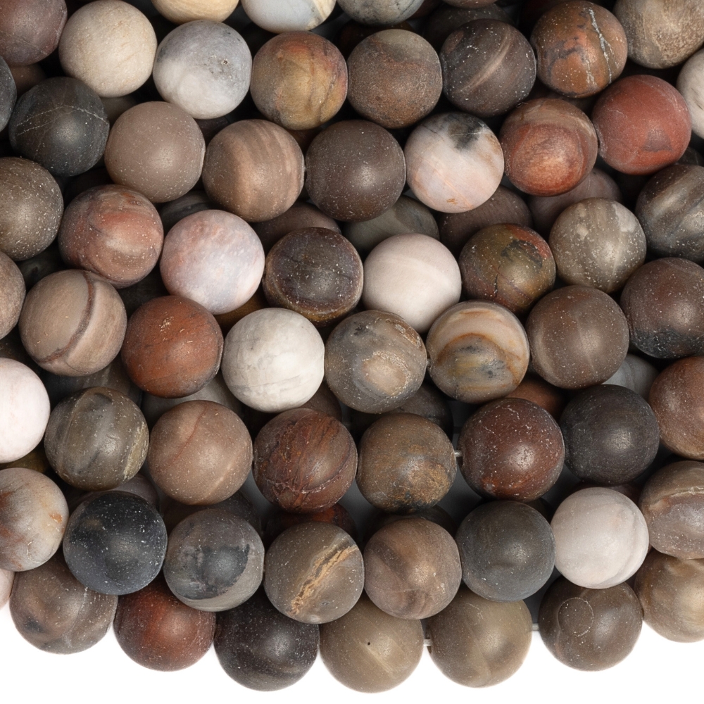 Megkövesedett fa gyöngyök 8 mm matt zsinór