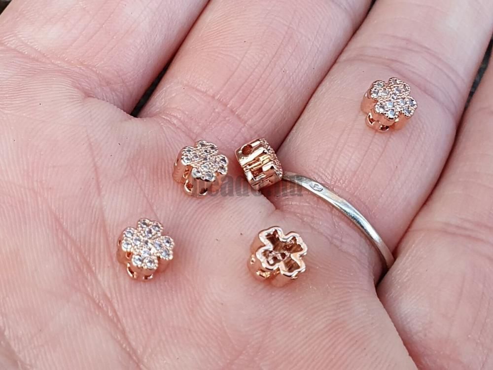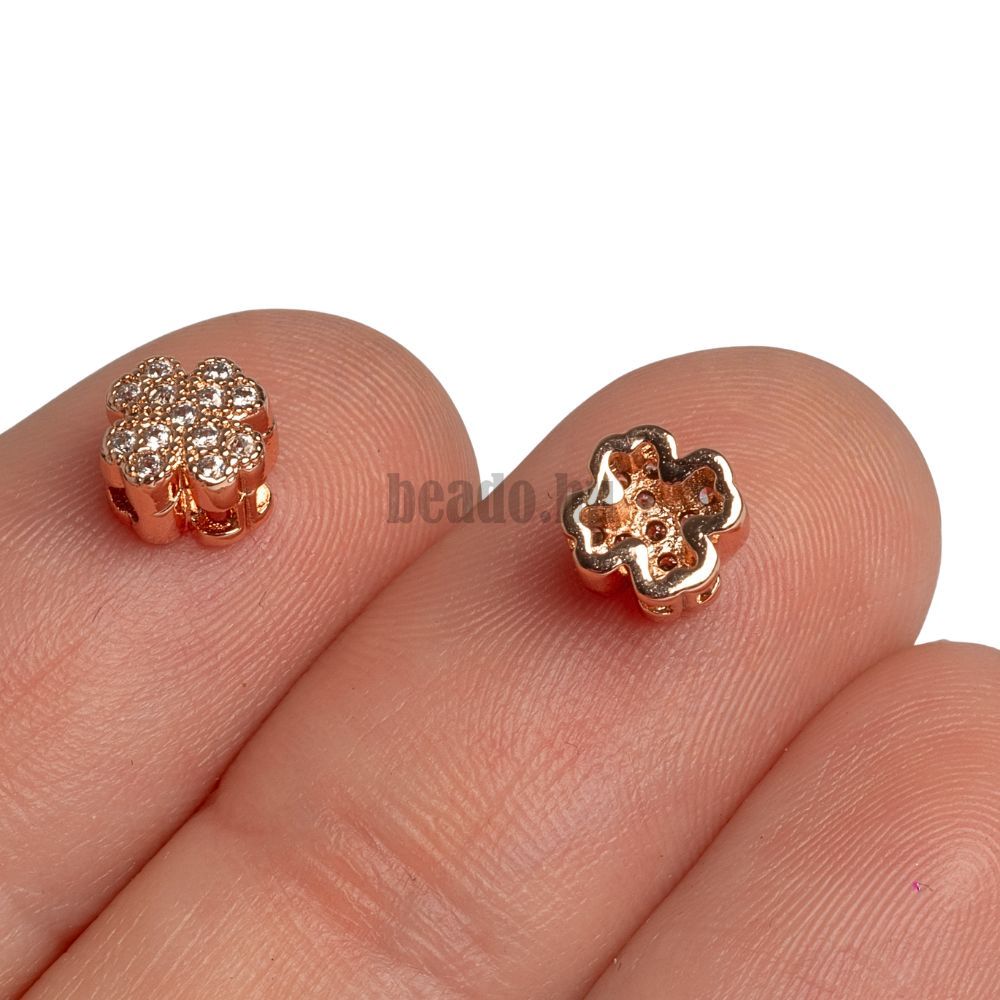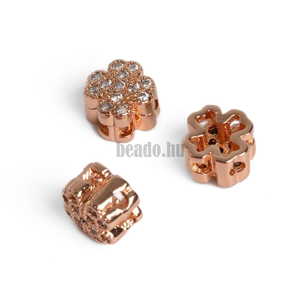 • Mini négylevelű lóhere gyöngy rózsaarany fehér cirkonnal