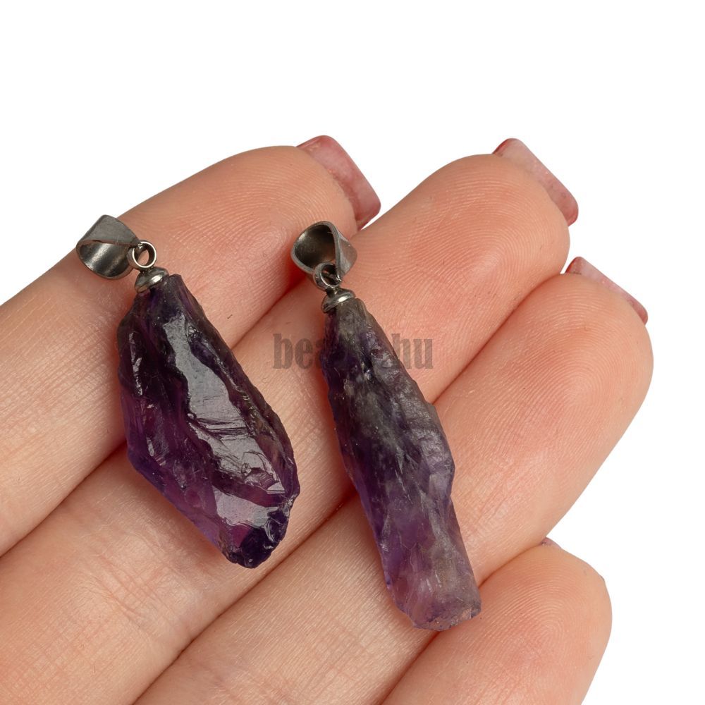• Nagyobb nyers ametiszt medál antikezüst akasztóval rozsdamentes acélból